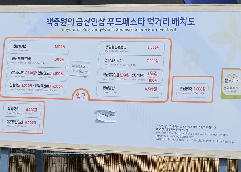 역시나 최고의 인기코스는 저렴한 가격과 다양한 인삼을 활용한 음식으로 유명한 백종원 금산인삼 푸드페스타였습니다.