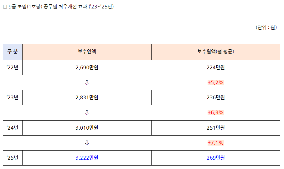 2025년 공무원 보수 인상: 전년 대비 3.0% 상승