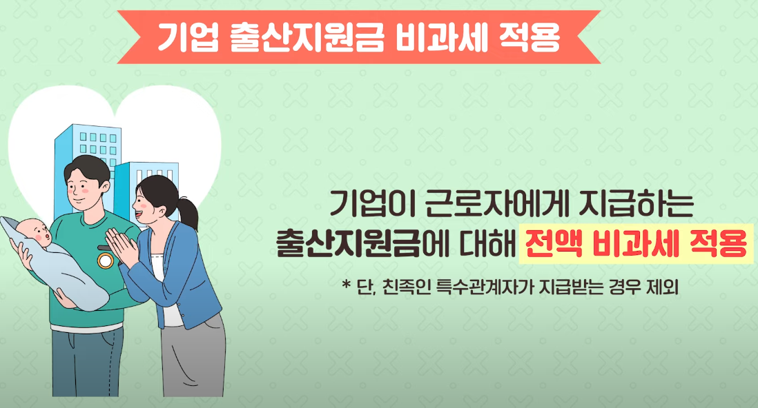 출산 지원금도 전액 비과세로 전환되어, 기업에서 근로자에게 더 많은 출산 지원금을 제공할 수 있게 되었어요. 이를 통해 출산 준비에 필요한 경제적 부담을 줄일 수 있게 될 것입니다.