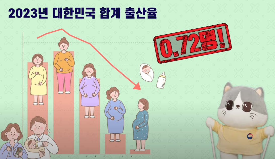 "작심삼일? 나야 나"라며 쉽게 흘려버리는 이야기가 아닙니다. 지금 우리나라는 국가 비상 사태를 선언해야 할 정도로 중요한 문제를 직면하고 있어요. 바로 출산율 위기입니다. 지난해 우리나라의 합계 출산율은 0.7명으로, 이는 OECD 평균의 절반도 안 되는 수치입니다. 많은 분이 출산율 위기를 떠올리면 전쟁이나 재난 수준의 비상 사태와는 다르게 생각할 수 있지만, 현재의 인구 감소는 국가의 지속 가능성을 위협하는 심각한 문제입니다.