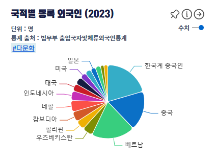 이는 노동력 부족, 국제결혼, 유학생 증가 등 다양한 이유로 외국인 유입이 지속되고 있음을 보여줍니다.