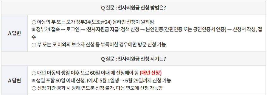 지원 내용은 아동 1인당 일정 금액이 지급되는 형태로 이루어집니다. 2025년 인천 천사지원금의 지급일은 2024년 6월 10일부터 시작될 예정이며, 이후 매달 정기적으로 지급됩니다. 이 지원금은 가정의 경제적 부담을 크게 덜어주어 자녀 양육에 필요한 다양한 비용을 지원하는 데 큰 도움이 될 것입니다.