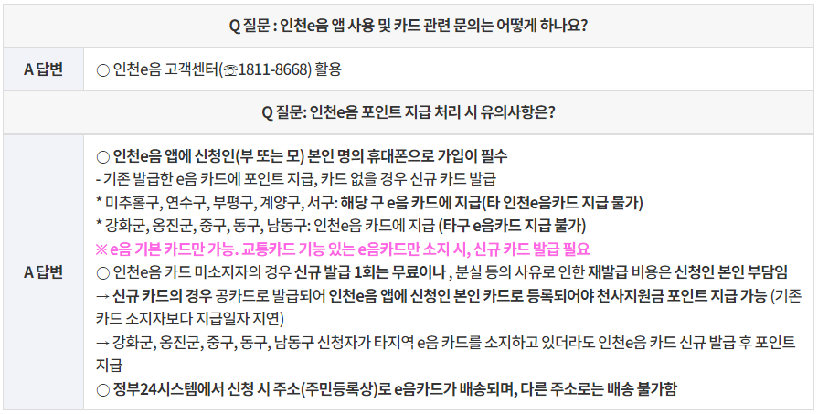 - 인천시에 거주하는 가정: 인천시에 1년 이상 거주하는 가정