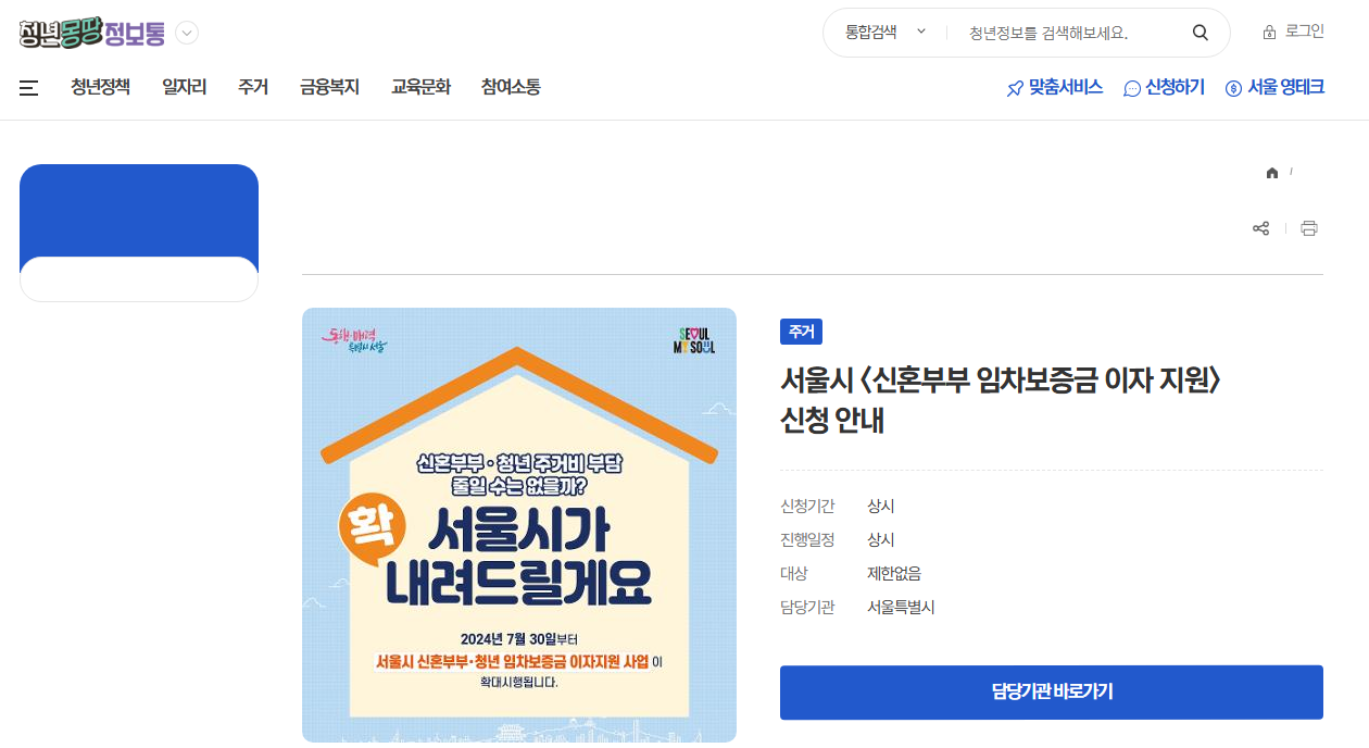 - 전세대출 이자 지원: 최대 1억 5천만 원 지원 + 이자 보조