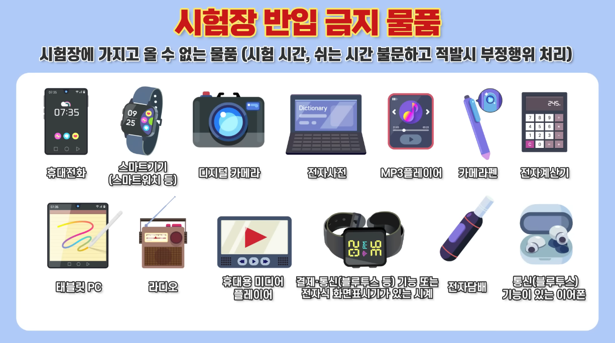 시험장 반입 금지 물품과 주의사항