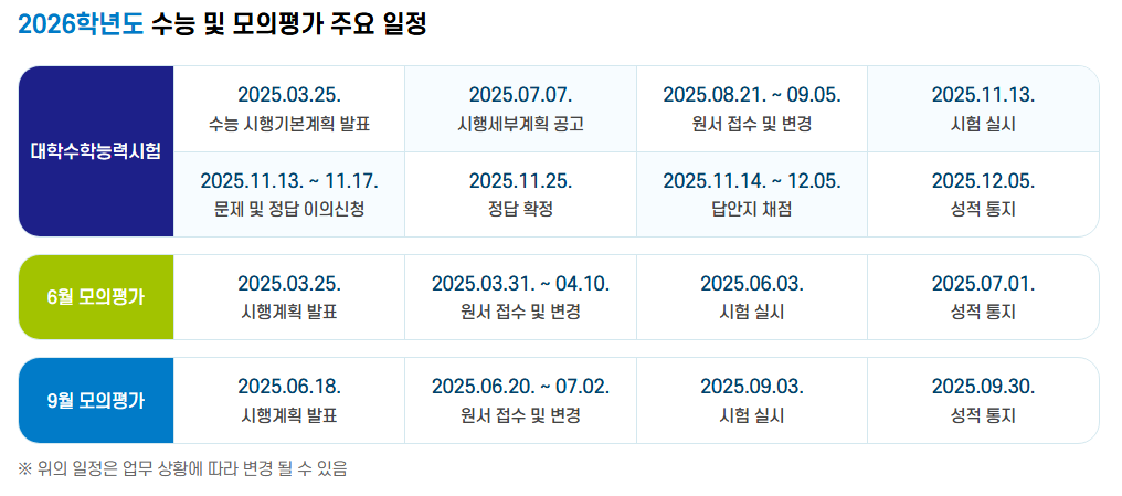 한국교육과정평가원은 3월 25일, ‘2026학년도 수능 시행 기본계획’을 발표하며 올해(2025학년도) 수능 시행 방향도 함께 밝혔는데요.
