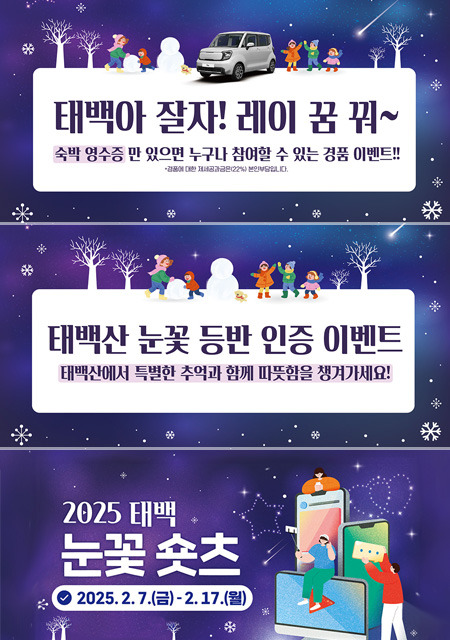 2025 태백산 눈축제는 2월 7일부터 16일까지 약 10일간 진행되며, 강원도 태백의 눈꽃 공원에서 열립니다. 이 축제는 겨울의 아름다움을 만끽할 수 있는 최적의 기회를 제공하며, 대형 눈조각 전시와 다양한 겨울 스포츠 체험 등 다채로운 프로그램이 준비되어 있습니다. 특히 가족 단위 방문객들에게도 적합한 다양한 이벤트가 마련되어 있어 모두가 즐길 수 있는 축제입니다.