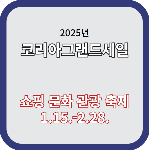 한국문화체육관광부는 한국방문의해위원회와 함께 오는 5월 28일까지 '2025 코리아그랜드세일'을 개최한다고 15일 밝혔다. 이번 행사는 2011년부터 매년 방한 관광 비수기인 1월과 2월에 열리며, 외국인 관광객의 한국 방문과 소비를 촉진하기 위해 다양한 항공, 숙박, 쇼핑, 식음, 체험, 편의 서비스 등을 제공하는 한국의 대표적인 쇼핑 문화 관광 축제이다.