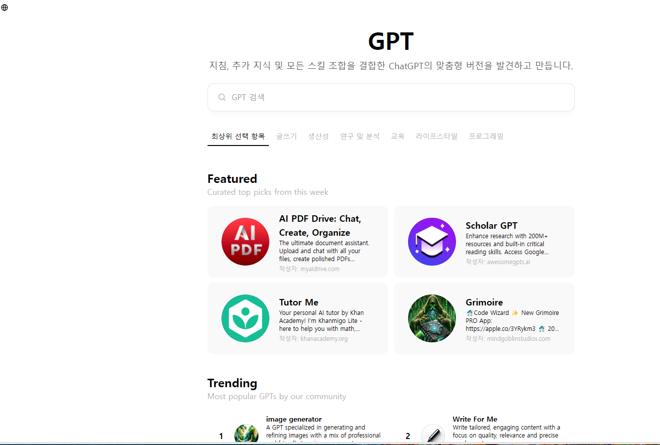 | 기본 검색 옵션 | 사용자는 ChatGPT를 브라우저의 검색 엔진으로 설정할 수 있습니다. |